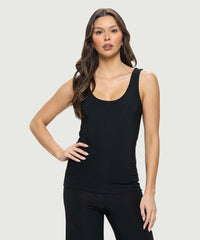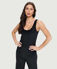 - DETAILS: Bra-Friendly Tank, Front and Back Scoop, Basic, Sleeveless, Slimming