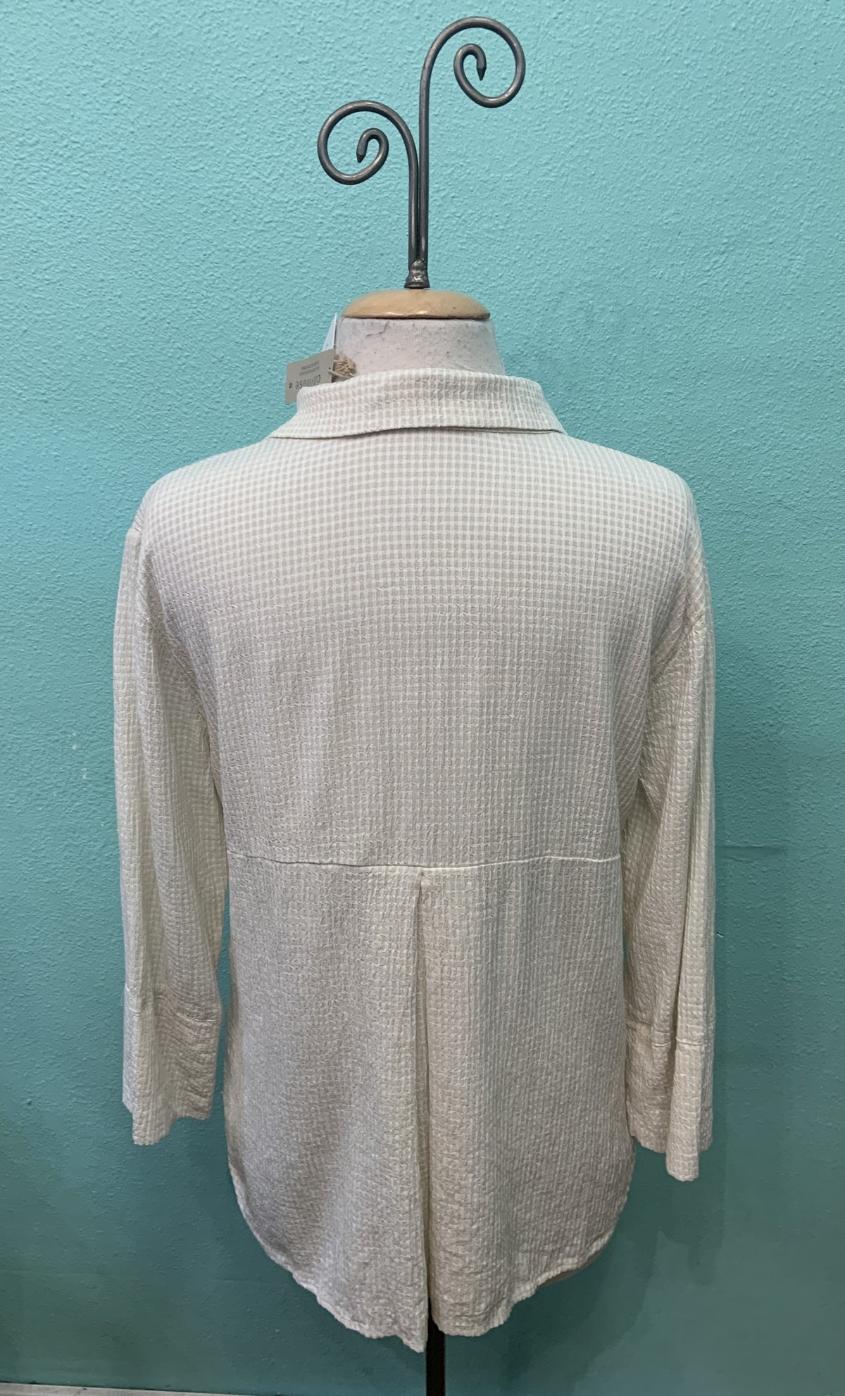 EASY CROP SHIRT CRINKLE CHECK-JICAMA-CUT LOOSE