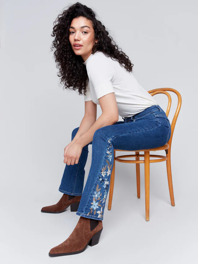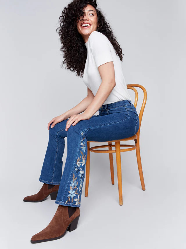 EMBROIDERED INSERT BOOTCUT JEAN-INDIGO-CHARLIE B