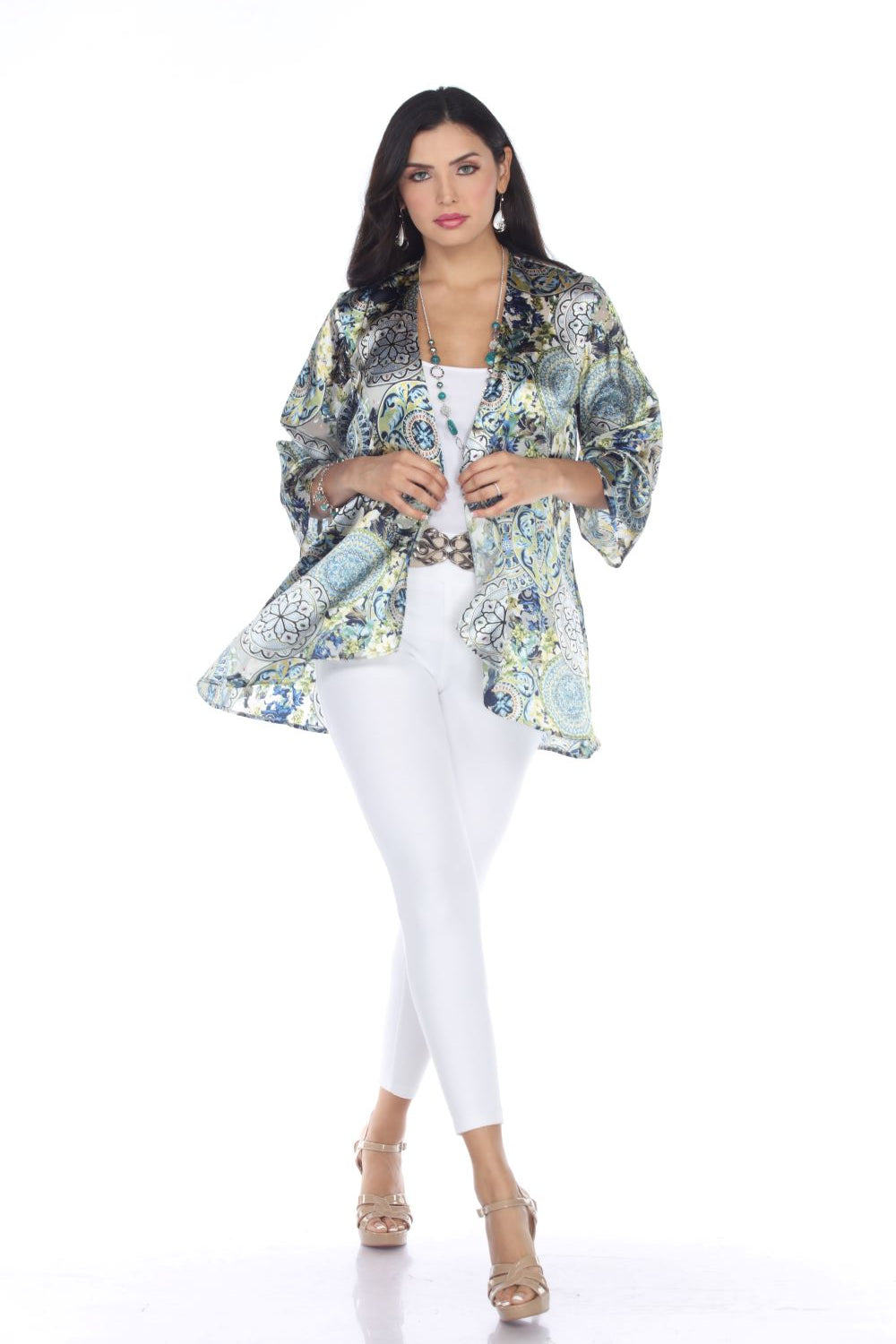 FLORAL DENIM BLUE SWING JACKET- ARIS A