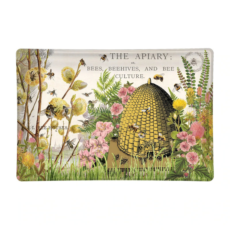 Honey & Clover calls up the buzzing of bees and the sweet nectar they gather—lovely in any home. Our beautifully decorated, lightweight glass soap dishes were designed specifically to hold our large bath soap bars or boxed single soaps. Hand washable and individually boxed.