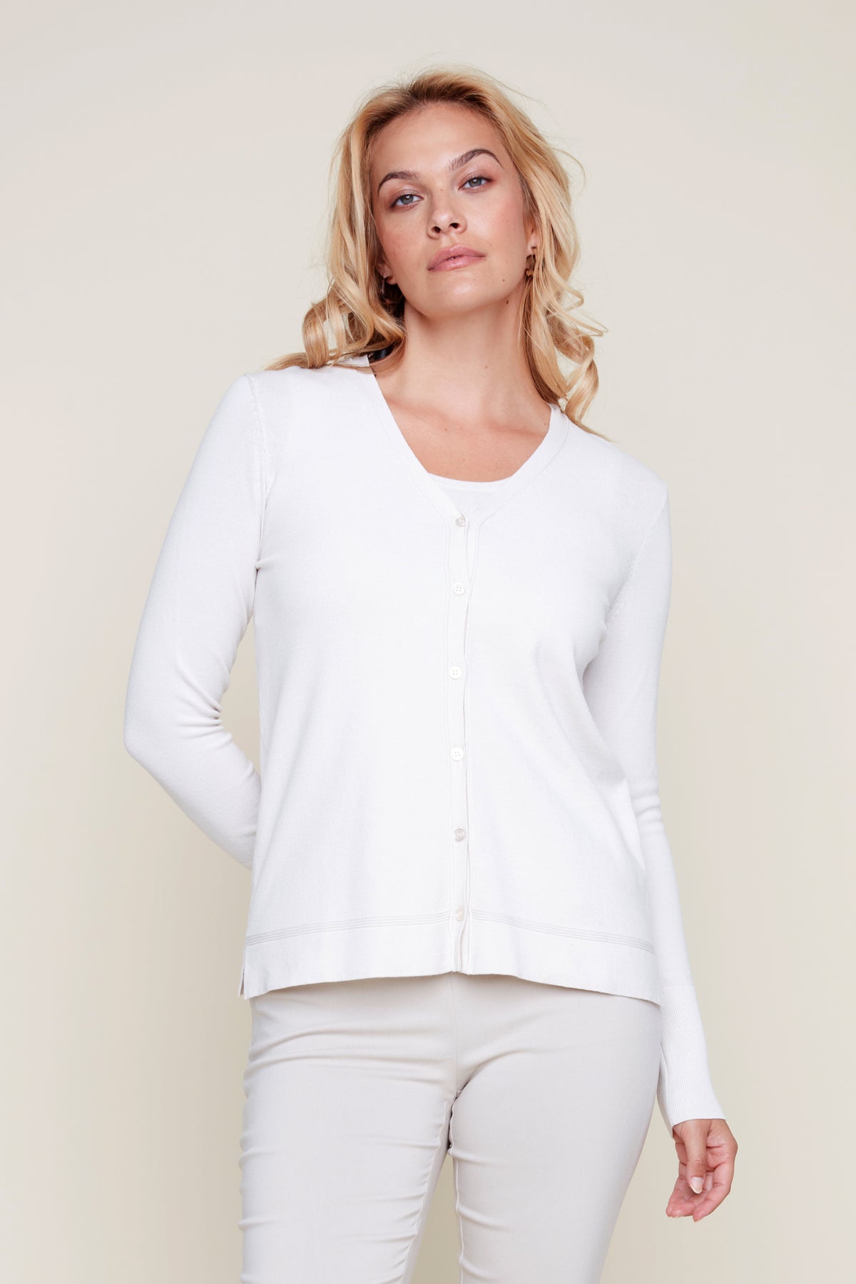 KNIT BUTTON SWEATER CARDIGAN-OYSTER-RENUAR