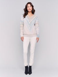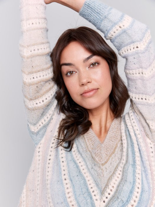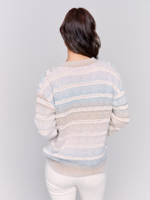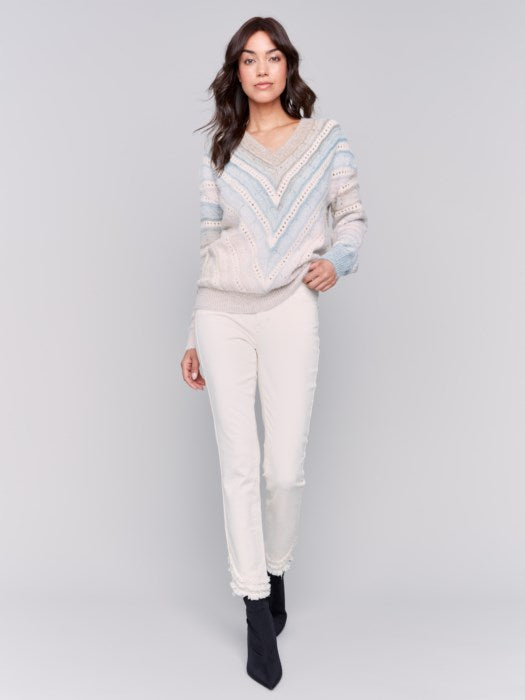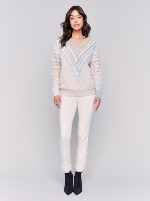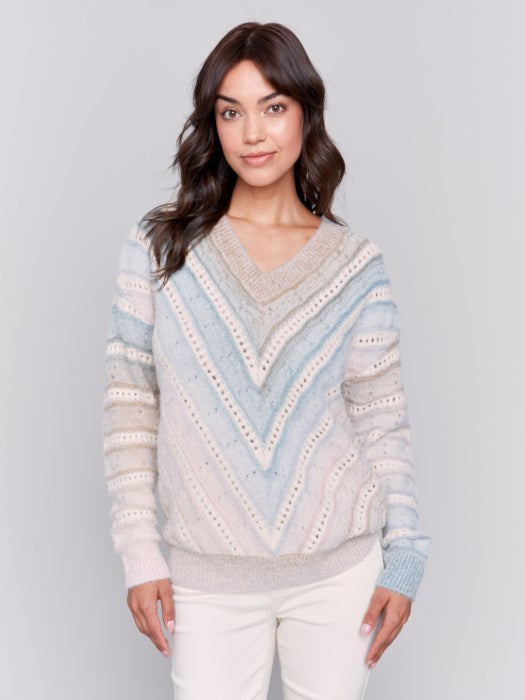 LONG SLEEVE V-NECK OPEN STITCH SWEATER-CHARLIE B